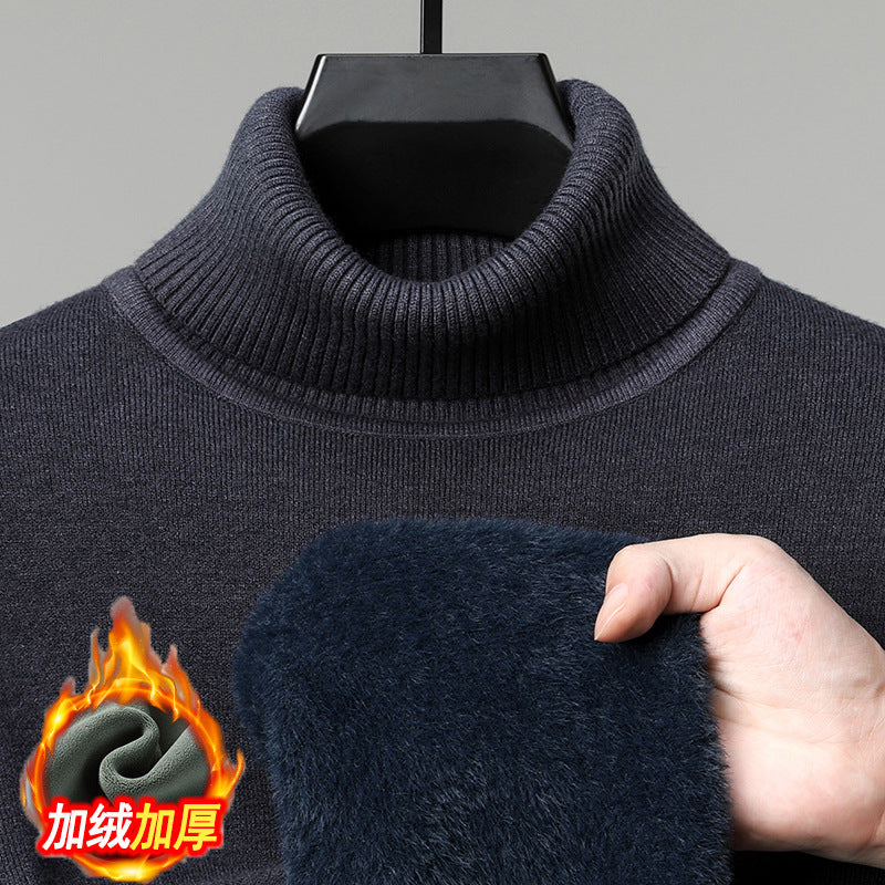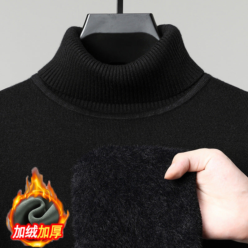 一体绒不褪色不起球秋冬季新款半高领加绒加厚休闲百搭针织衫毛衣
